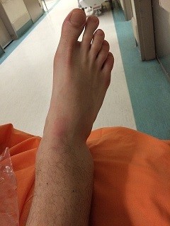 Takže som teraz doma a vďaka šikovnosti a profesionalite som stále so sádrou, ktorá už mala byť dole a noha už nemala byť zaťažovaná sádrou. Pochopiteľne mám na oboch stranách členku rany po operácií, ktoré by asi bolo tiež dobré skontrolovať. Ale poisťovňa sa riadi heslom „Čas hojí všetky rany“.