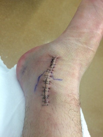 Štichy boli odstránené...Tieto jazvy bolo potrebné skontrolovať po 3 týždňoch a samozrejme X-Ray či je vo vnútri všetko poriadku